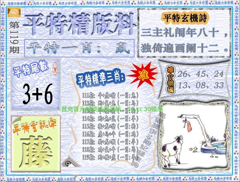 | 116期:九肖【马鼠兔牛狗虎猴羊猪】开马24准 |