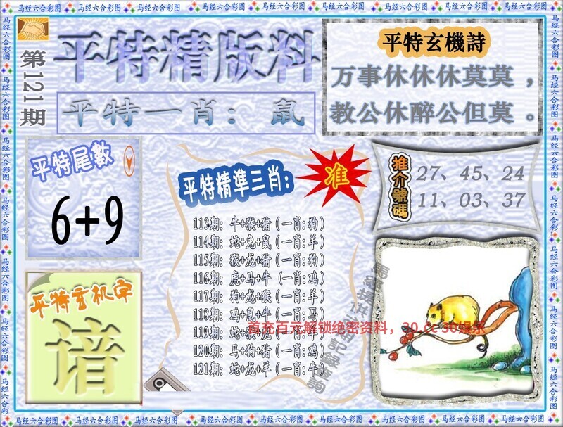 | 123期:绝杀三肖【马虎鼠】开發00准 |